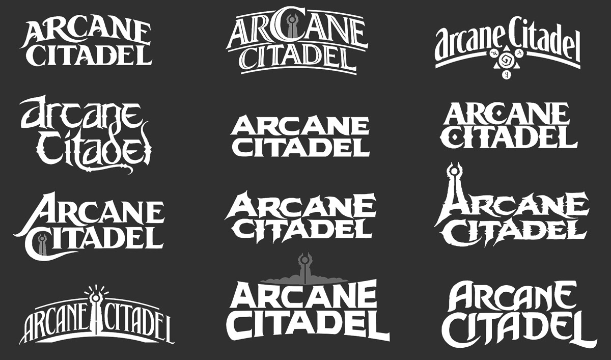 I was honored to be asked to design a logo for a new strategy game from mobile publisher Nexon-M. I worked for a couple of months on this project and developed numerous black and white sketches and full-color mock-ups. The game started out with just the name ‘Arcane Citadel’ but I also explored treatments for alternate names as well as subtitles for the game. These are just some of the many finished logos I produced for the project. The final game title is ‘Arcane Citadel: Duel of Mages’ and you can see more about the game on its page on Facebook.