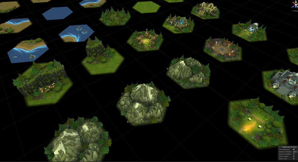 The traversable world was composed of blended hex tiles like these.