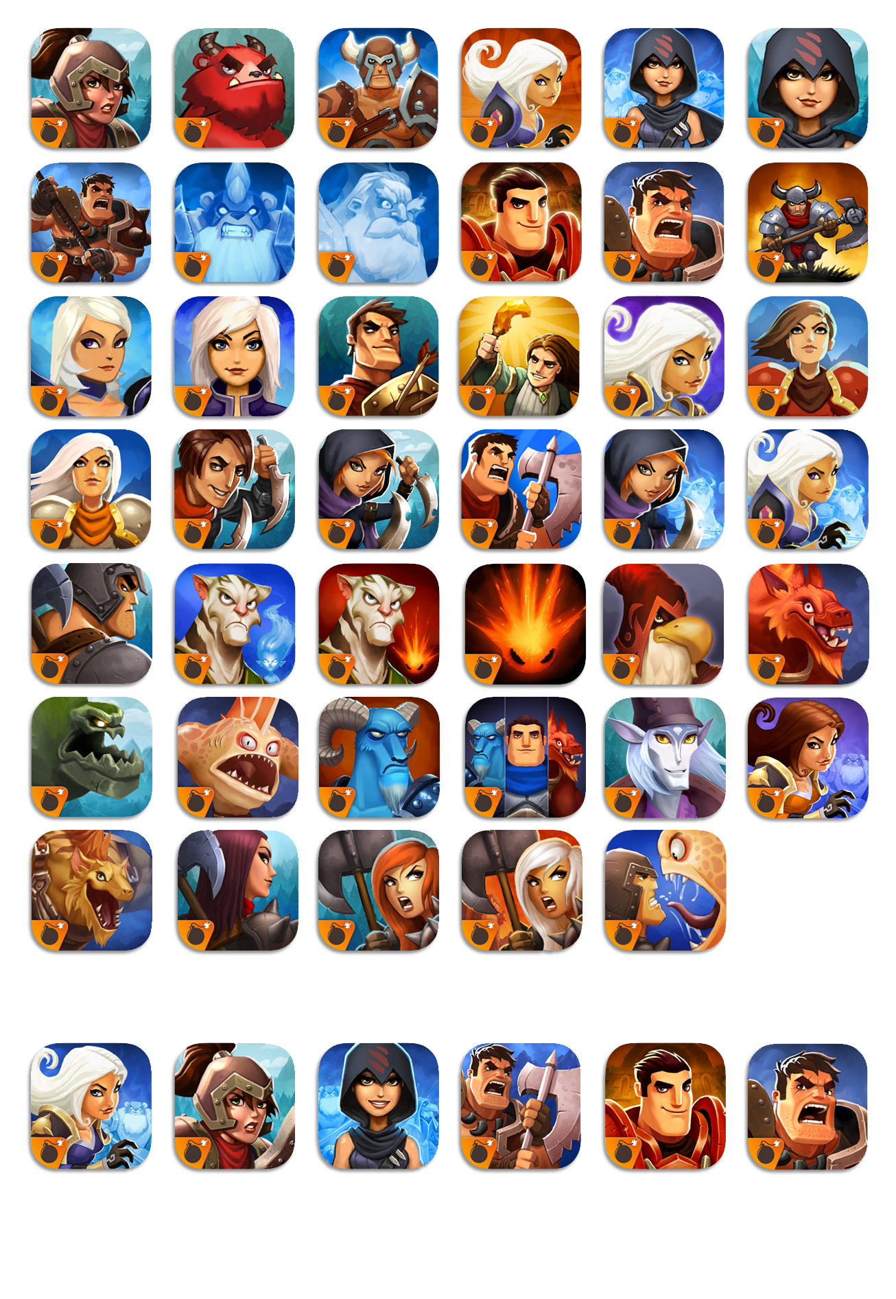 I used concept illustrations, paint-overs of 3D models, in-game character illustrations, and illustrations by both character design lead Den Yang and myself to come up with a wide array of app icon concepts for Kabam’s fantasy action game Spirit Lords. We chose six from this group to test with potential players, and then used the findings from those tests to choose our final app icon. The final was painted by me over a sketch by Den.