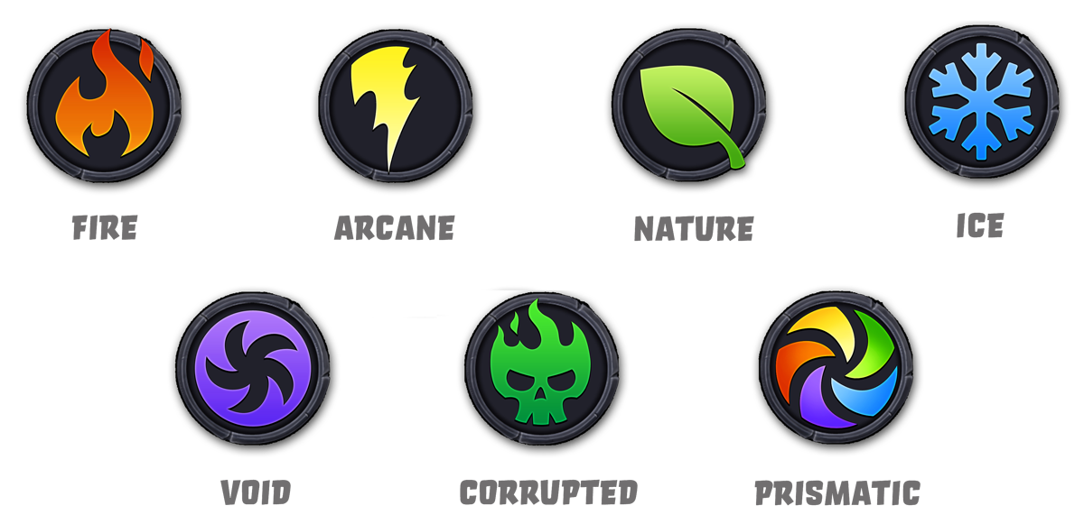 In Kabam’s game Spirit Lords, every spirit in the game – and every player ability – was associated with a specific element. Each element was strong against another element and weak against another. Plus, some spirits could be strong in all elements at once (Prismatic.) I designed the icons for these elements, making sure that their colors were distinctive and that the icons read when reduced to a very small size on a mobile device.