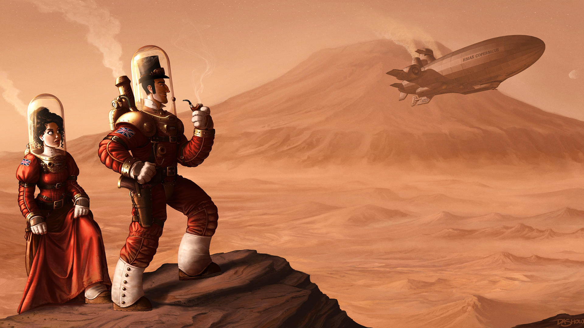 'Olympus Mons,' promotional image created for Nova Albion steampunk convention with the theme 'Steampunks in Spaaaaace.'