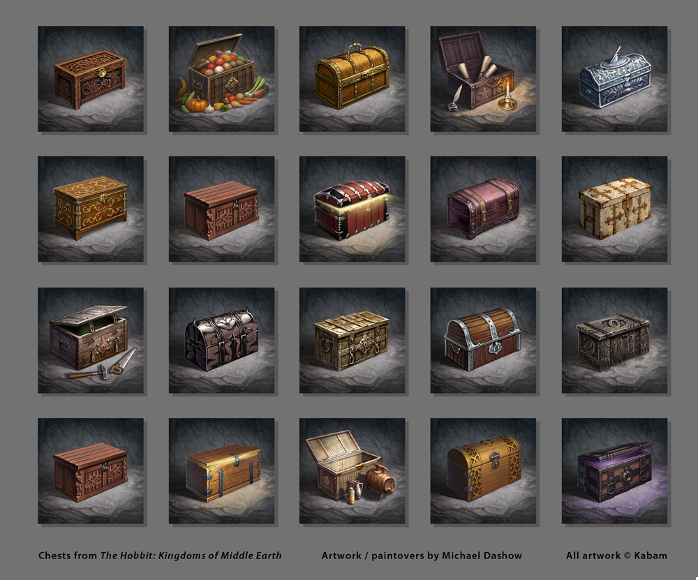 A whole bunch of icons I painted for ‘The Hobbit: Kingdoms of Middle Earth.’ Some of them were originally illustrated by Kabam’s Beijing team, but I ended up painting over and unifying the whole lot of them, as well as painting a lot of new ones myself.